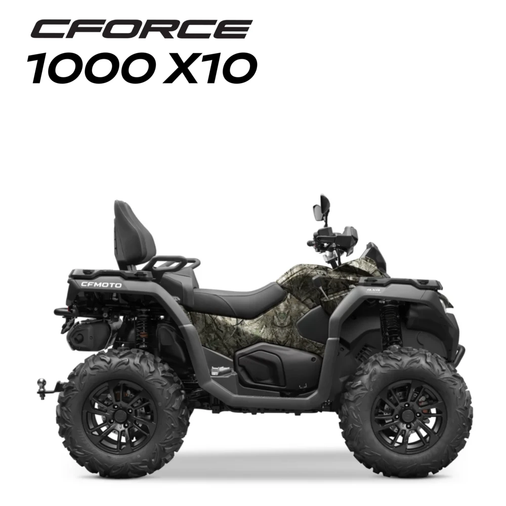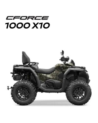 A csomagot elektromos csörlő, 7 colos TFT műszeregység teszi teljessé a 14 colos alumínium kerekek és 27 colos gumiabroncsok mellett. A modell lehetővé teszi a 820 kg maximális vontatási kapacitást, és biztosítja 300 kg-ig terjedő teherbírást. A CFORCE 1000 X10 másik megkülönböztető jellemzője a merész dizájn, beleértve a hatszögletű hűtőrácsot és a LED-es lámpákat.