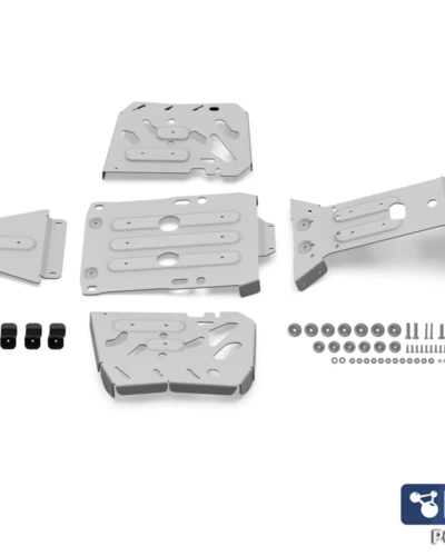 Ez a haspáncél készlet 4 mm vastag alumíniumból készül, amely kiemelkedően ellenálló a szakítással szemben. A lézervágott kialakításnak köszönhetően tökéletesen illeszkedik a gép alvázára.